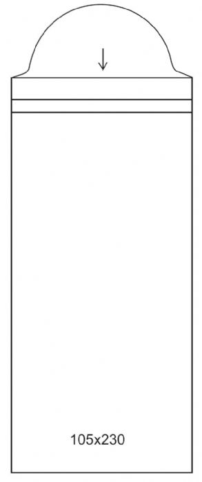 Estuche plástico transparente con solapa de cierre: 105x230mm. Paq.50