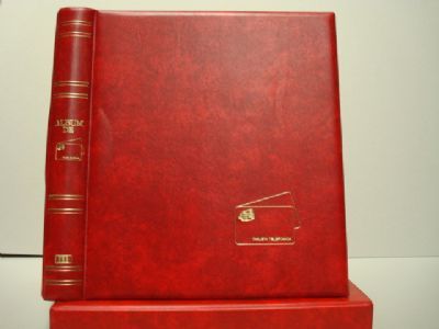 Album TARJETAS TELEFONICAS. Tamaño Mediano 26x23, 4 Anillas Standard 80/80/80. Fabricado en polipiel bitono espumado de alta calidad. Marcas y Logos en oro inalterable por alta frecuencia. INCLUYE funda cajetín también en polipiel idéntica al álbum; lo que le confiere una gran prestancia y calidad. Tamaño: 26x23 Color: Rojo.
