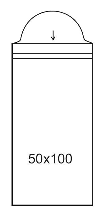 Estuche plástico transparente con solapa de cierre: 50x100mm. Paq.50
